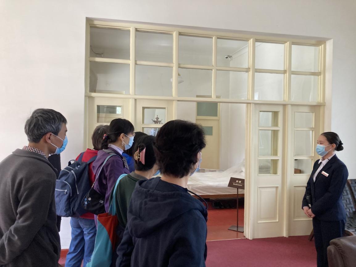 修缮一新的双清别墅,保持了原有风貌,春暖花开,格外幽静。党员同志集体参观了毛泽东同志当年办公居住的地方。展览室内,办公室、会客室、卧室、饭厅的家具陈设,床上的书籍和墙上的《中国解放区现势图》、《最新北平大地图》等的摆放,都一如原样。党员们步行来到朱德、刘少奇、周恩来、任弼时同志的办公居住地“来青轩”,共同缅怀老一辈革命家当年在香山工作生活情况。