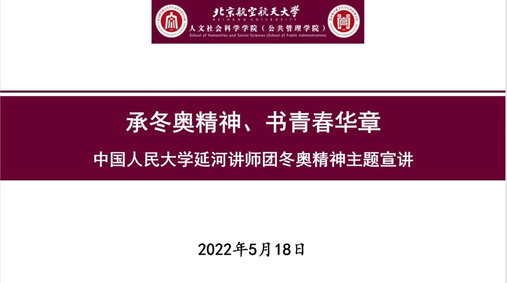 为深入学习贯彻习近平总书记在北京冬奥会冬残奥会表彰大会上的讲话精神,传承冬奥精神,以优异成绩迎接党的二十大和北航七十周年校庆, 5月18日下午,w66利来旗舰厅邀请中国人民大学延河讲师团开展“承冬奥精神、书青春华章”冬奥精神宣讲主题学习日活动,公司本研共300余名同学线上参与活动。