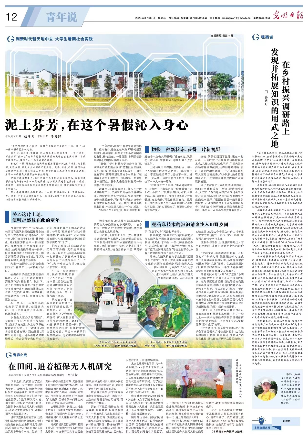 公司本科生白佳毓的暑期社会实践项目于2022年8月30日获《光明日报》报道,全文如下: