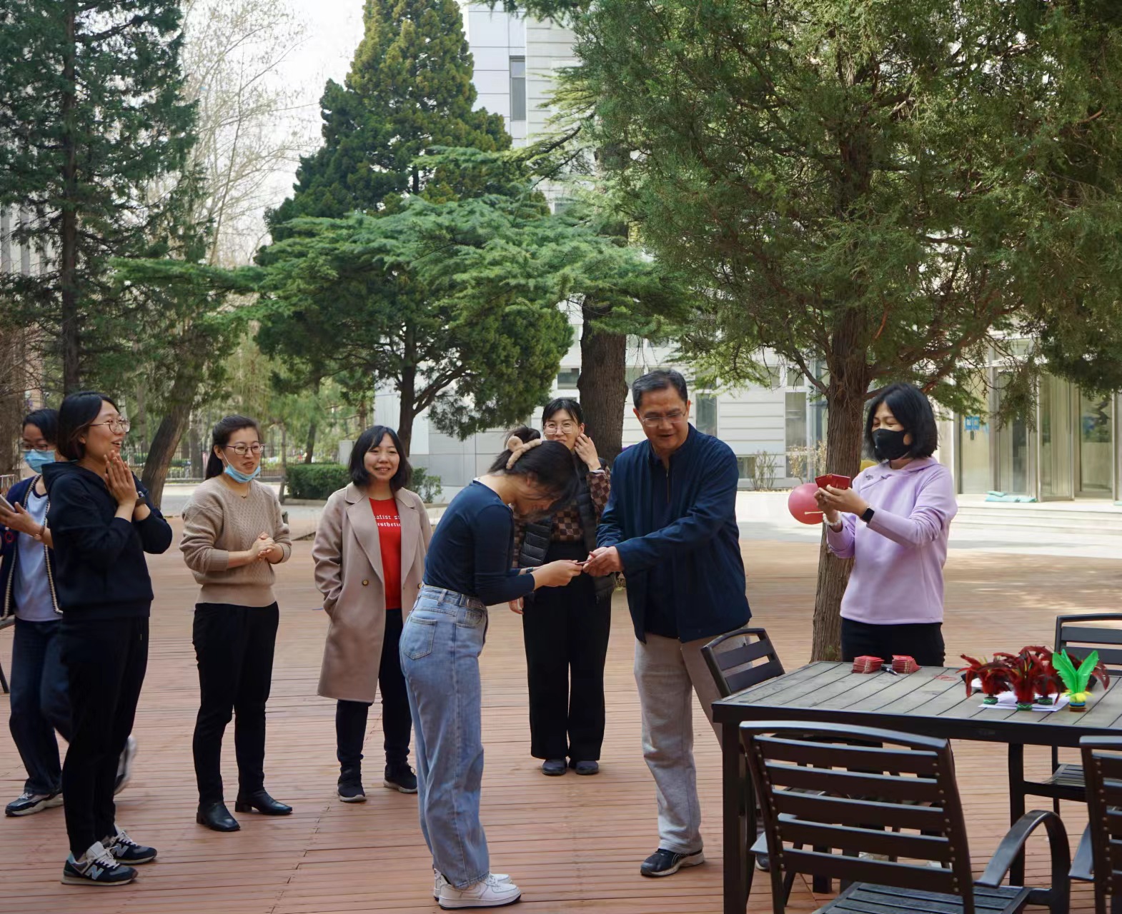 在第113个国际劳动妇女节来临之际,为关怀女教师、丰富女教师业余生活,进一步凝聚教职工力量,w66利来旗舰厅于3月8日在人文雅集举办“人文公管·体育传情”三八妇女节教职工踢毽子比赛活动。