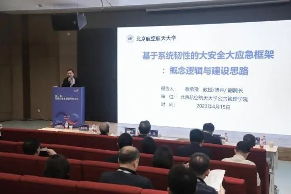 詹承豫教授作了题为《基于系统韧性的大安全大应急框架:概念逻辑与建设思路》的报告,研究通过“以小见大”的辩证逻辑,对新中国成立后大安全大应急框架的形成脉络进行了梳理,并基于提升系统韧性提出了推动大安全大应急框架建设的总体思路。