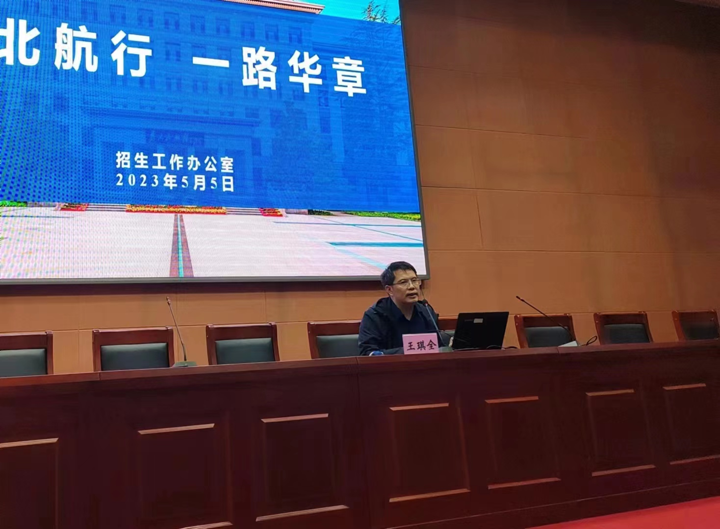 在集宁一中,内蒙古招生组与董事长兰荣彦等座谈交流招生工作。王琪全组长作北航招生政策解读专题讲座,集宁一中员工王喜忠主任分享个人在集宁一中和北航成长经历,鼓励同学们脚踏实地、全心备考,向北航行。