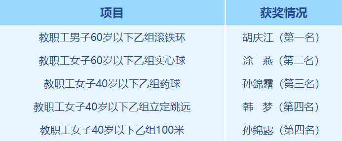 经过激烈的角逐,公司获得优秀组织奖、道德风尚奖、本科生乙组团体总分第六名、研究生乙组团体总分第四名、广播操评比三等奖。
