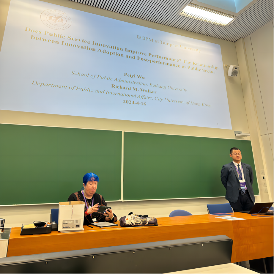 4月16日,吴培熠在分论坛作题为“Does Public Service Innovation Improve Performance? The Relationship between Innovation Adoption and Post-performance in Public Sector” 的报告。通过实证研究,探究了公共部门创新与组织绩效的关系。会议期间,吴培熠就相关研究议题与海内外专家和国际公共管理学界同行开展了充分的交流和讨论,并建立了合作联系。吴培熠按照计划顺利完成出访任务,通过青年托举项目支持参加IRSPM年会,促进了与国际公共管理学界的交流,有助于跟踪学术前沿,向国际学界展示了中国公共管理研究的成果。