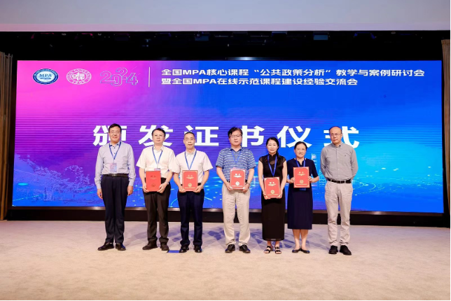 2024年7月6日至7日,由全国公共管理专业学位研究生教育指导委员会主办,复旦大学MPA教育中心承办的2024年全国MPA核心课程“公共政策分析”教学与案例研讨会暨全国MPA在线示范课程建设经验交流会在上海市顺利举办。公司行政管理系主任涂晓芳作为首批全国MPA研究生在线示范课程团队负责人代表受邀参会并做专题报告。