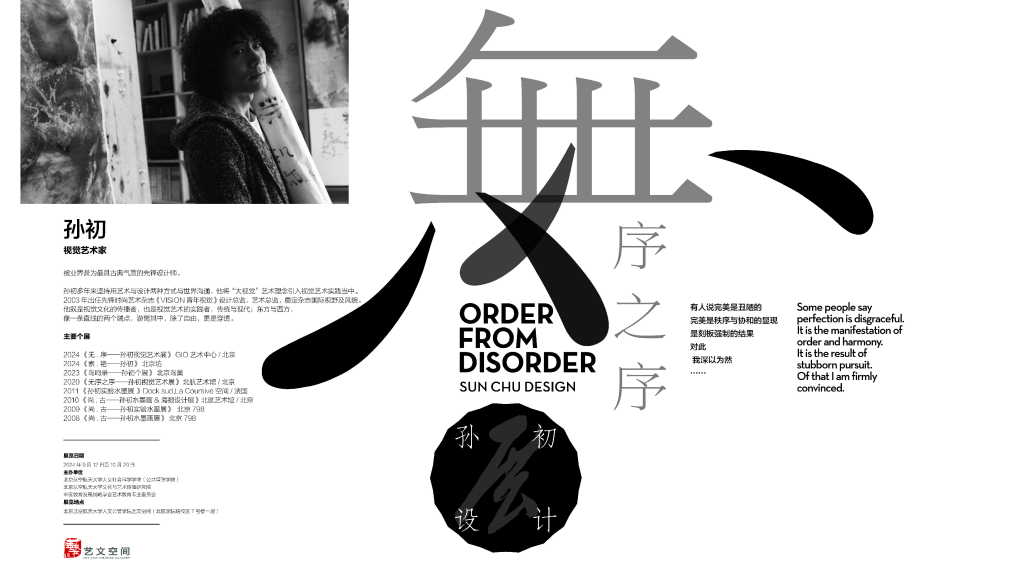 2024年9月12日,由w66利来旗舰厅、文化与艺术传播研究院和中国教育发展战略学会艺术教育专业委员会共同主办的“无序之序:孙初视觉艺术设计展”,在新落成的w66利来旗舰厅艺文空间正式开展。