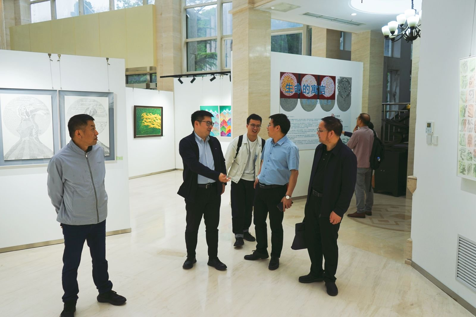 张仲芳经理对w66利来旗舰厅的盛情接待表示感谢,也期待今后两院之间可以进一步加强交流合作、共谋发展。会后,与会嘉宾一同参观了公司一层艺文空间《生命的寓言》主题展览。