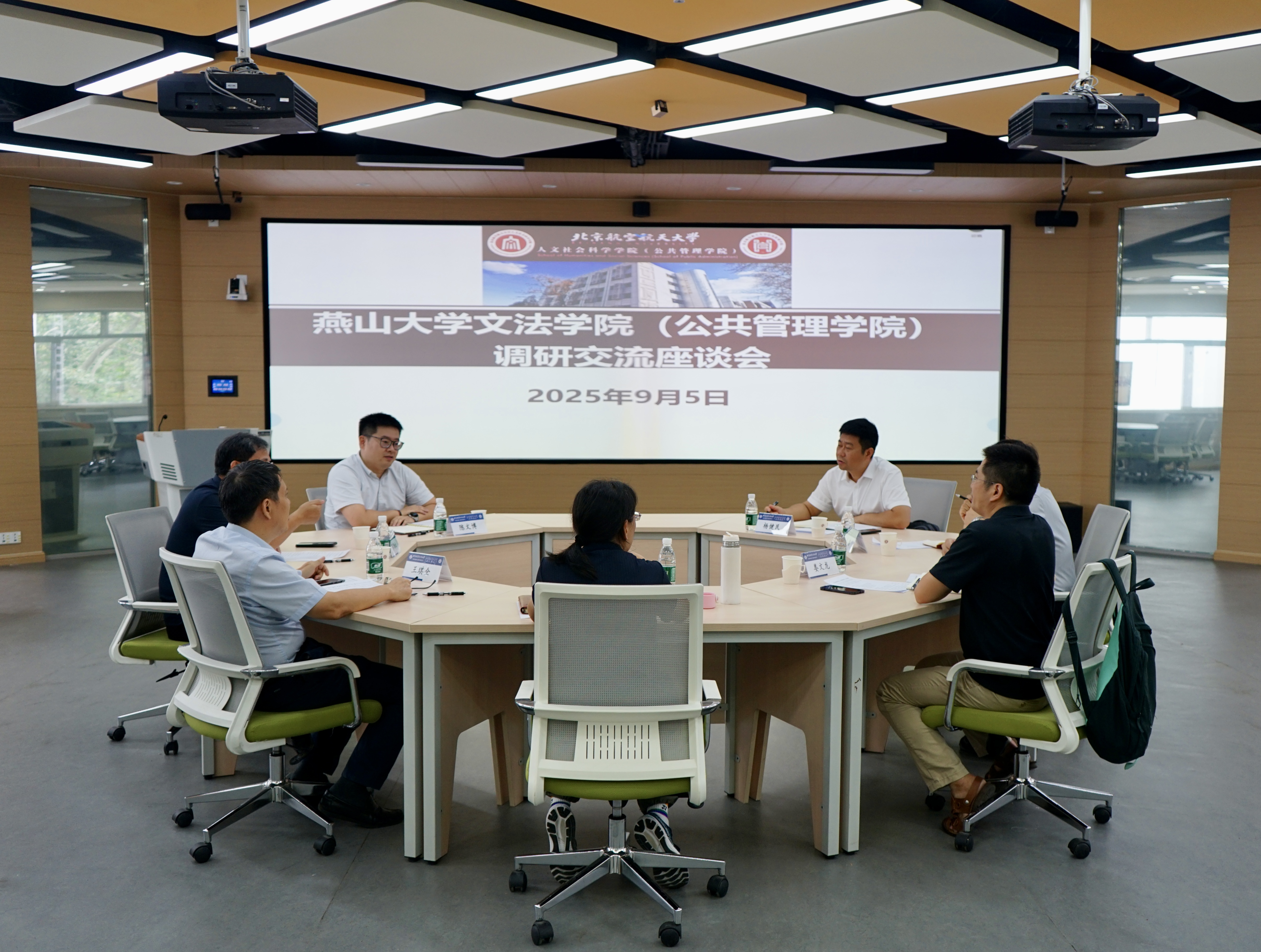 燕山大学文法公司(公共管理公司)杨健民书记和丛鑫经理分别介绍了燕山大学文法公司的党建成果、学科发展现状及未来规划,并表示希望以此次交流为契机,深化两院合作,共同探索人文社科与公共管理学科发展新路径。