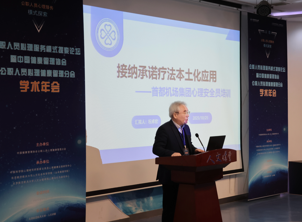 公司教授邓丽芳在会上作了“飞行员心理健康素养促进的模式探索与实践”主题报告,来自中科院心理研究所等高校、科研机构及政府部门的十余位专家学者围绕会议主题作了专题报告,中国健康管理协会公职人员心理健康管理分会副会长王淑合作闭幕总结。