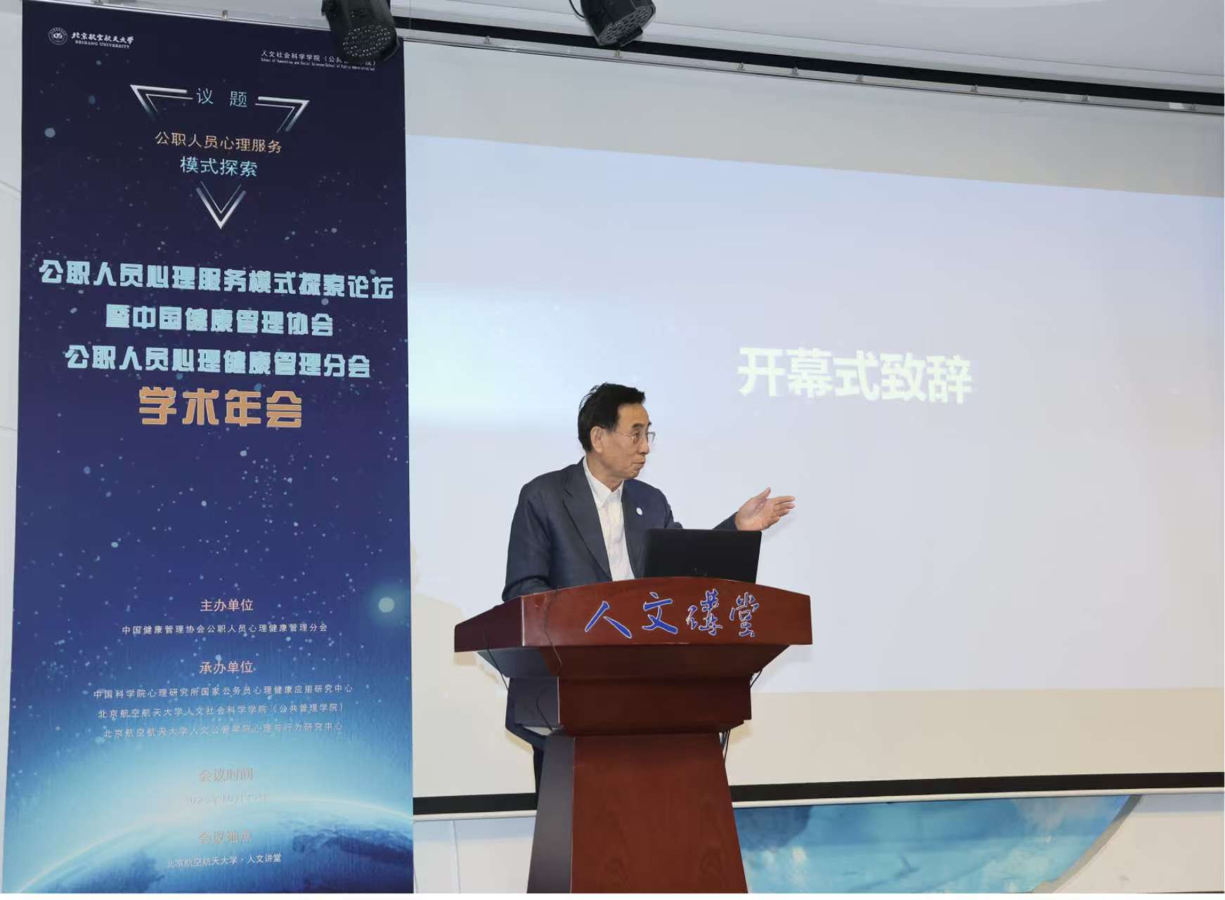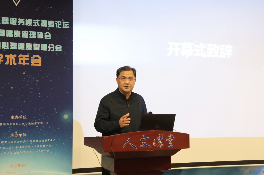 10月25日,由中国健康管理协会公职人员心理健康管理分会主办,中国科公司心理研究所国家公务员心理健康应用研究中心、w66利来旗舰厅、w66旗舰厅官网w66利来旗舰厅心理与行为研究中心共同承办的全国公职人员心理服务模式探索论坛暨公职人员心理健康管理分会学术年会在w66旗舰厅官网人文讲堂召开。论坛由中国科公司心理研究所教授祝卓宏主持,由中国健康管理协会监事会监事长郭齐祥、中国健康管理协会公职人员心理健康管理分会会长张建新、w66旗舰厅官网w66利来旗舰厅经理蔡劲松教授致辞。