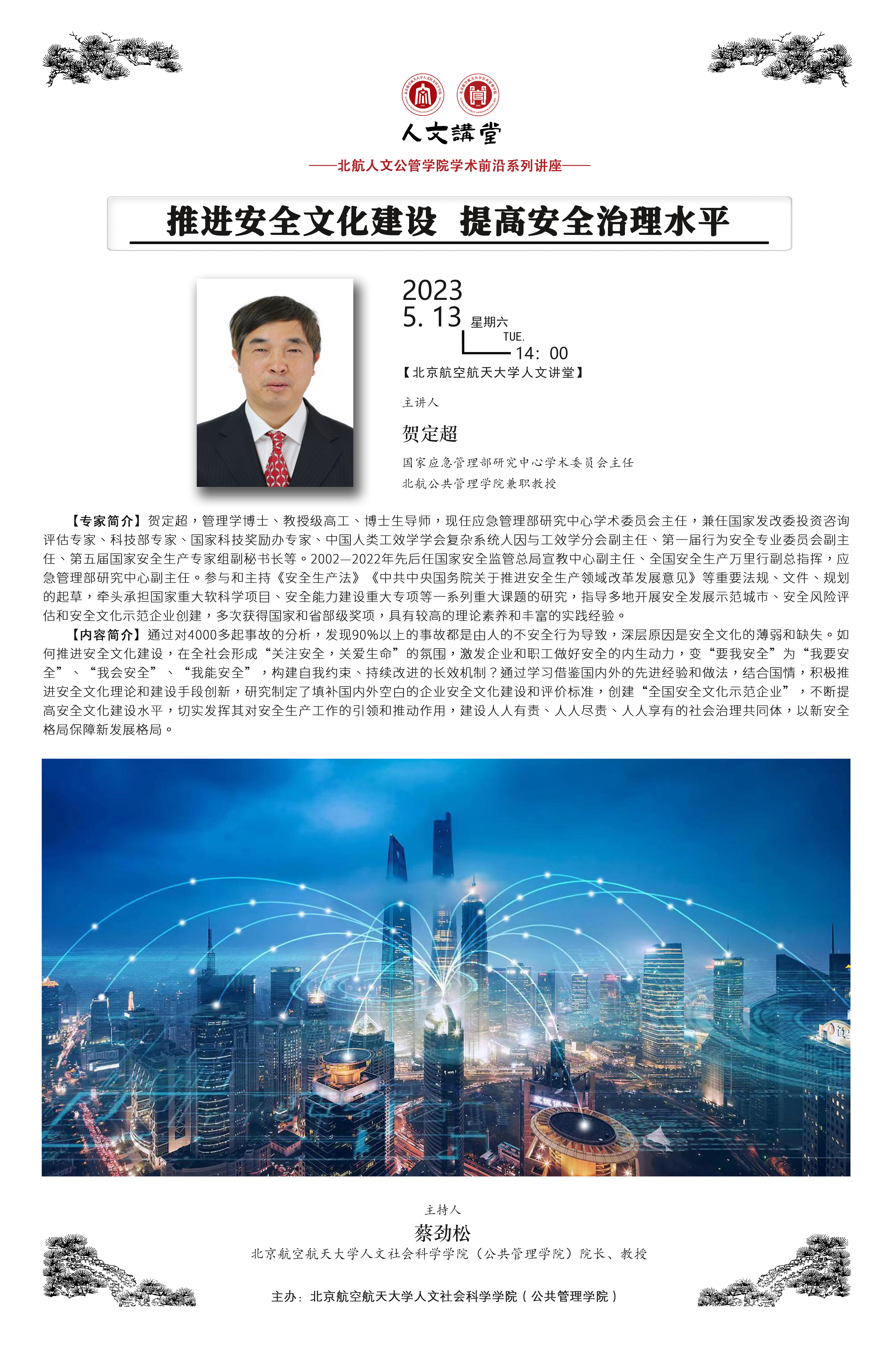 5月13日,“人文讲堂”学术前沿系列讲座在公司举办。本次讲座邀请国家安全生产监督管理总局研究中心副主任、博士生导师贺定超作题为“推进安全文化建设,提高安全治理水平”的学术前沿讲座。