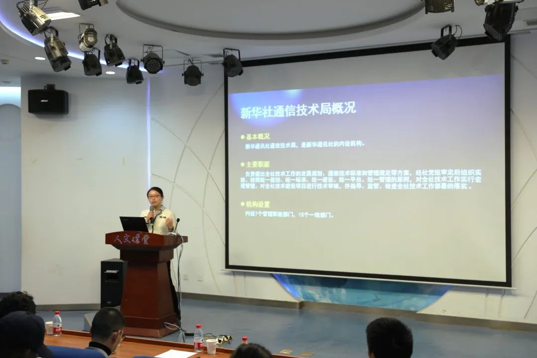 苏宇以媒体融合10年发展为背景,用媒体届技术发展经历的三个阶段——数字化建设阶段、新闻生产的智能化阶段,和大模型再造阶段向同学们展示了新华社所铸造的新闻技术梦工厂。