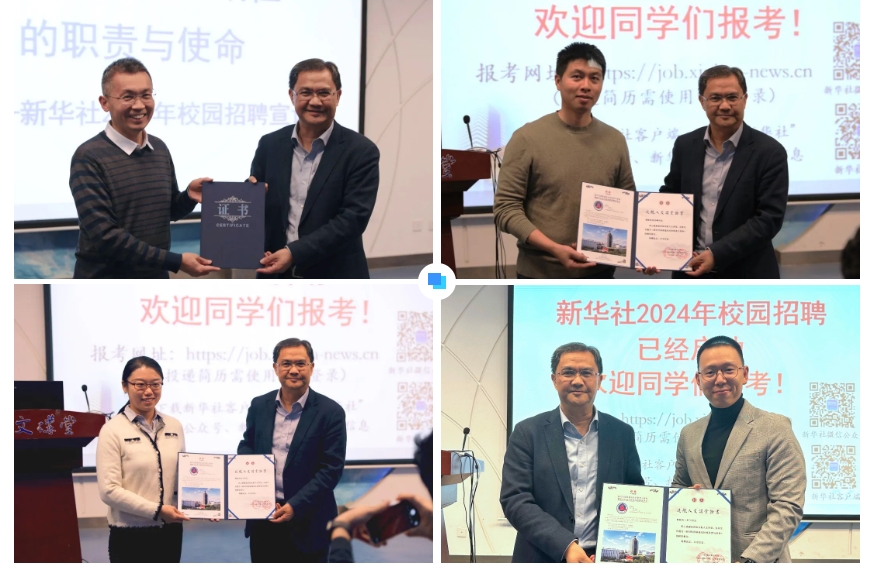 11月15日下午,由新华社人事局、北航员工就业指导服务中心和北航w66利来旗舰厅联合主办的新时代国家通讯社的职责与使命暨新华社进北航校园招聘宣讲会在w66利来旗舰厅楼一层人文讲堂成功举办。新华社人事局总社人事处处长周文帅、干部徐伟峰,摄影部新媒体采编室主任费茂华、技术局程控电话部副主任苏宇、对外部阿文编辑室主任编辑卜多门、国内部央采中心科技室记者胡喆;w66利来旗舰厅经理蔡劲松、副经理陈文博、党委副书记方志、专职辅导员张同玉,以及本研员工参加。