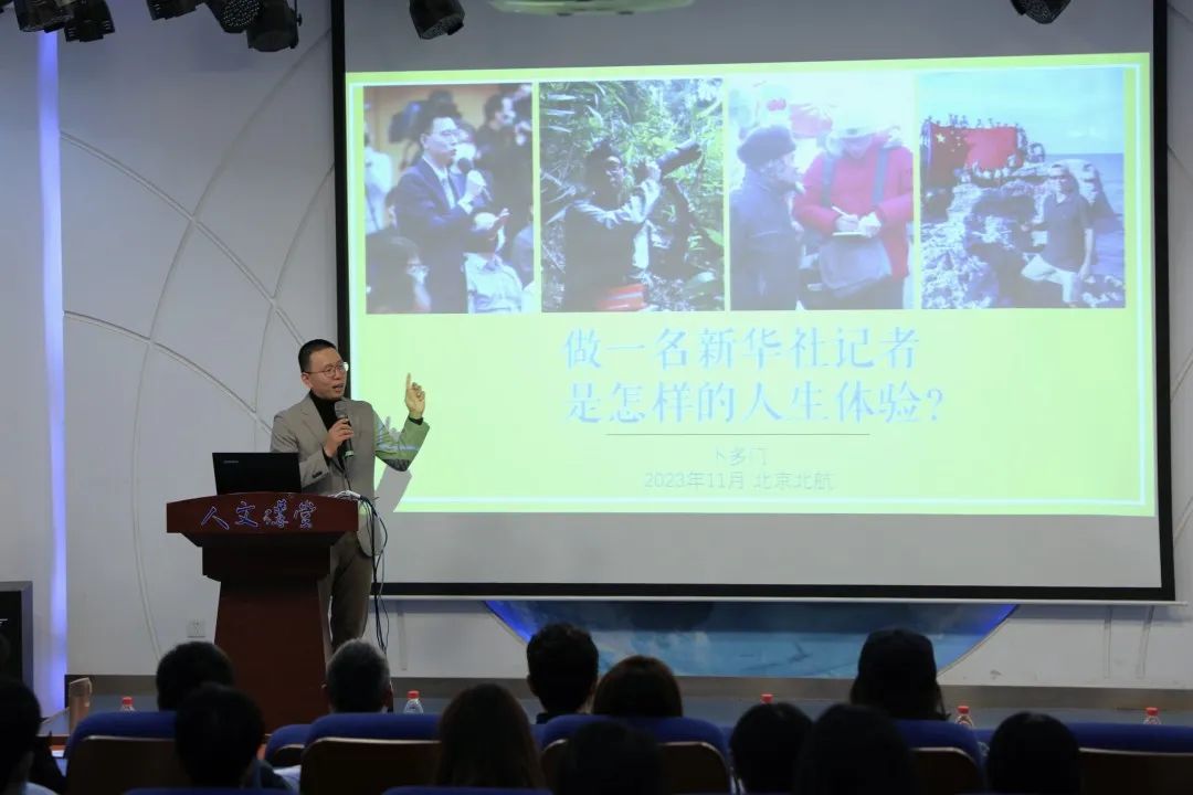 活动中,卜多门用一张张生动的、富有说服力的照片向大家诠释作为一名新华社记者是一种怎样的人生体验。他用四个词来形容新华社,即了解国情的一扇窗、走遍世界的一艘船、温暖包容的一个家和提升自我的大舞台。