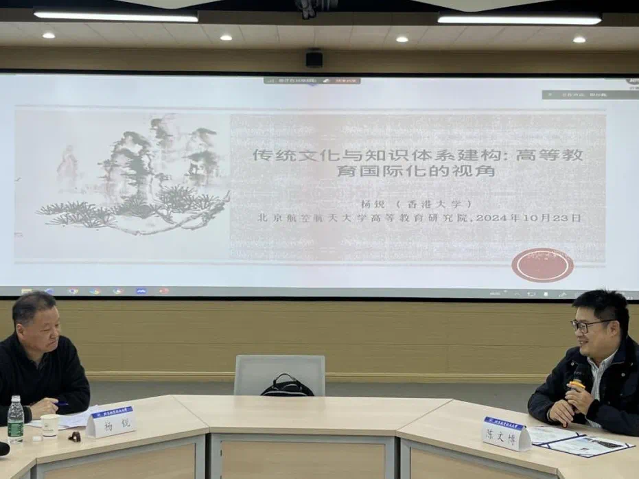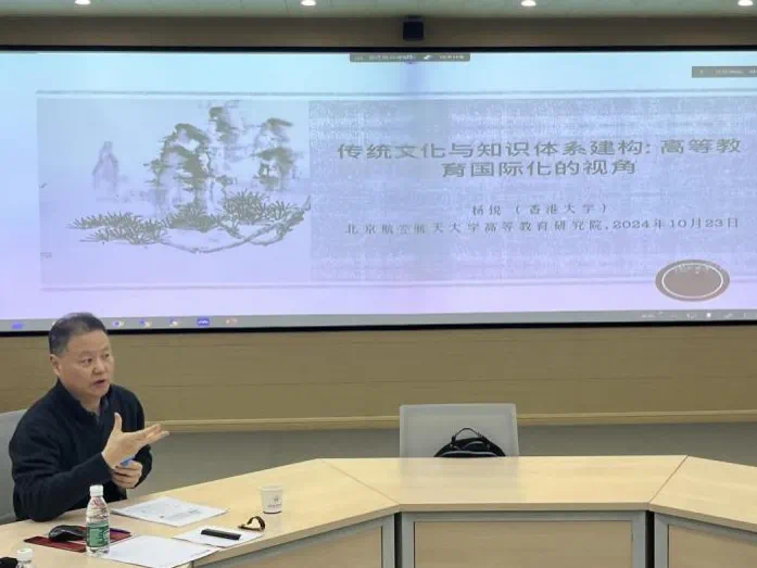 10月23日,香港大学教育公司经理杨锐教授做客“人文讲堂”,为w66利来旗舰厅带来“传统文化与知识体系建构:高等教育国际化的视角”的学术报告。此次讲座由w66利来旗舰厅主办,也是北航世界顶尖大学学者合作计划和北航学科引智平台建设计划的系列活动之一,同时也得益于首都高等教育发展研究基地的大力支持。w66利来旗舰厅副经理陈文博教授、马永红教授、包艳华副教授、涂燕老师、杜佳卉博士后、北航法国研究中心副主任萨日娜教授、马克思主义公司博士后任政等出席讲座,多公司师生积极参与了此次活动。讲座由w66利来旗舰厅刘扬教授主持。