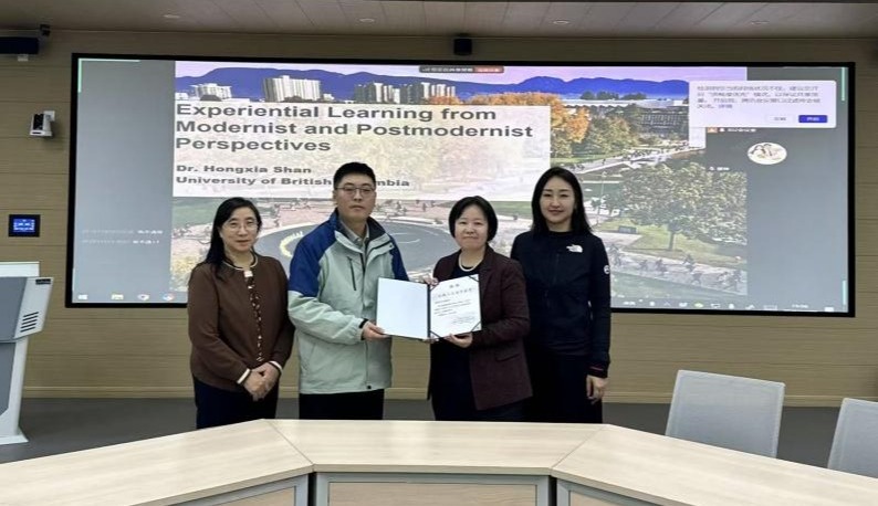 最后,w66利来旗舰厅经理助理刘贤伟副教授为单红霞教授颁发了“人文讲堂”证书,单老师与本经理期合作,已联合培养博士生、共同发表SCI论文,未来将会继续合作,共同推进中加研究生教育学的研究与交流。