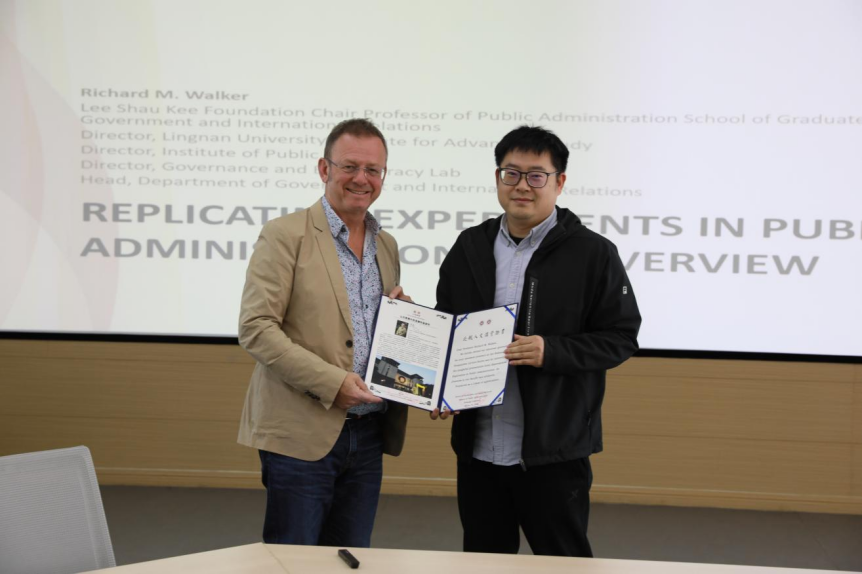 Richard Walker教授是公共管理领域国际顶尖学者,现任岭南大学政府与国际事务学系系主任、讲席教授、岭南高等研究院经理。研究聚焦公共治理、绩效管理与行为公共管理,连续四年入选斯坦福大学全球前2%顶尖科学家榜单,2020年当选为英国社会科公司院士。主持国家自然科学基金、香港研资局等重要课题。担任Public Management Review副主编及Journal of Public Administration Research and Theory、Public Administration、Public Administration Review多本国际期刊编委。此次讲座不仅深化了公司师生对公共管理复制实验研究的理解,也拓宽了研究方法视野,激发了对公共管理学科前沿问题及本土研究实践的深入思考。