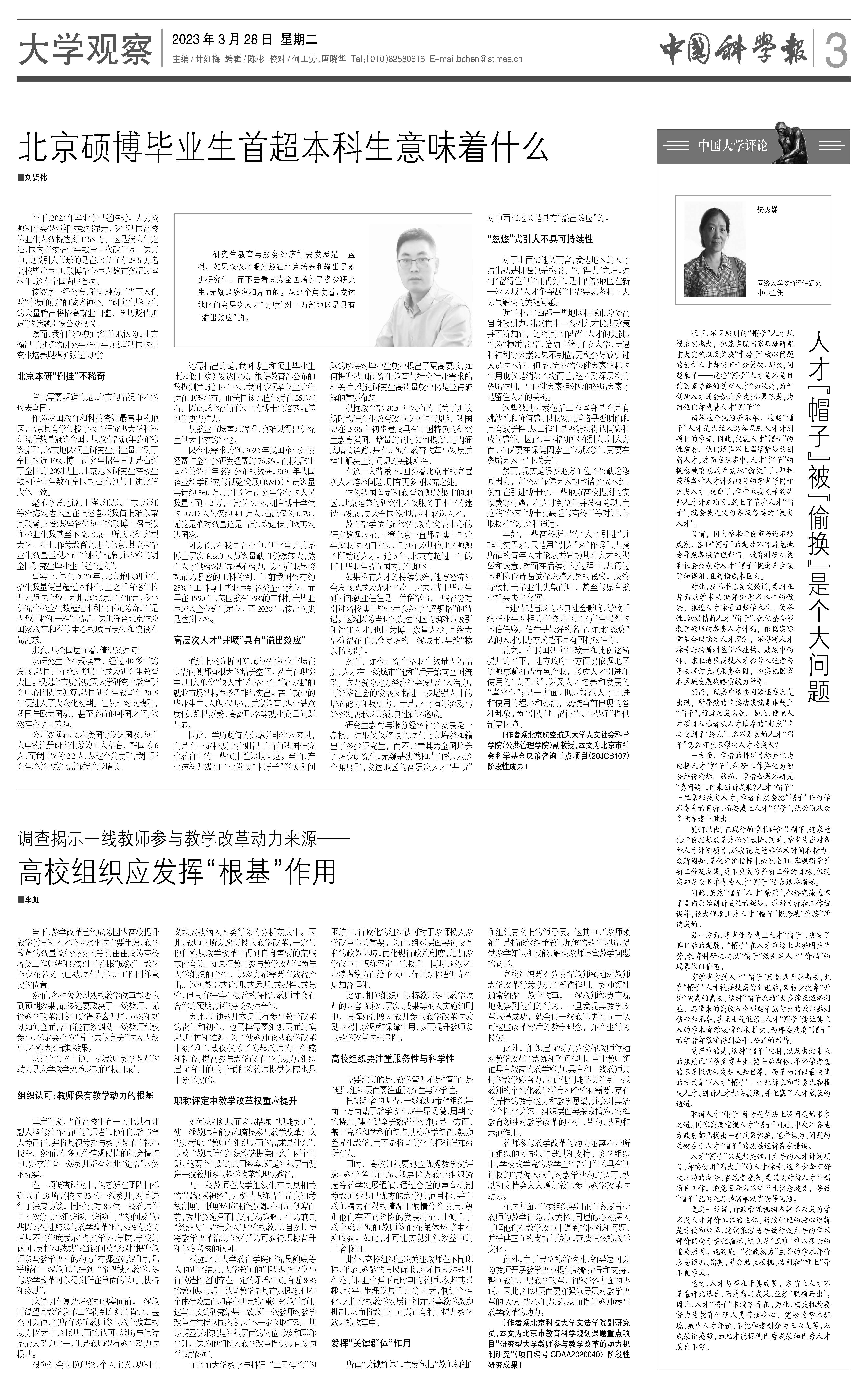 《中国科学报》 (2023-03-28 第3版 大学观察)