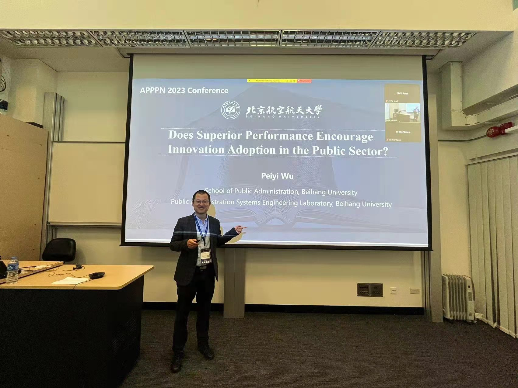 2023年5月31日至6月2日,w66利来旗舰厅公共政策与应急管理系助理教授吴培熠赴香港科技大学参加2023年亚太公共政策网络(the Asia-Pacific Public Policy Network,简称AP-PPN)年会,并作了题为“Does Superior Performance Encourage Innovation Adoption in the Public Sector ?”的学术报告。