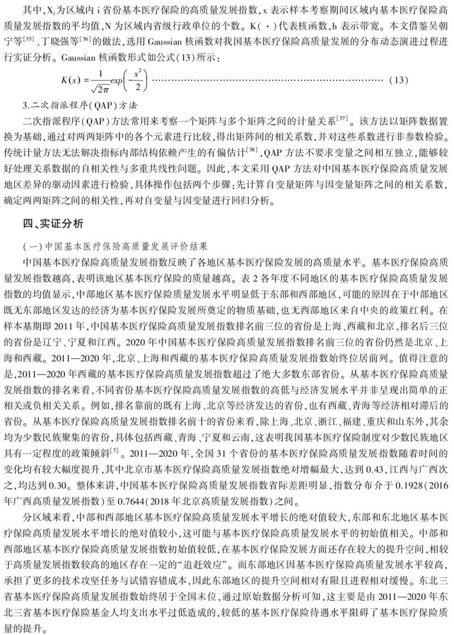 【关键词】基本医疗保险;地区差异;动态演进;Kernel密度估计;高质量发展