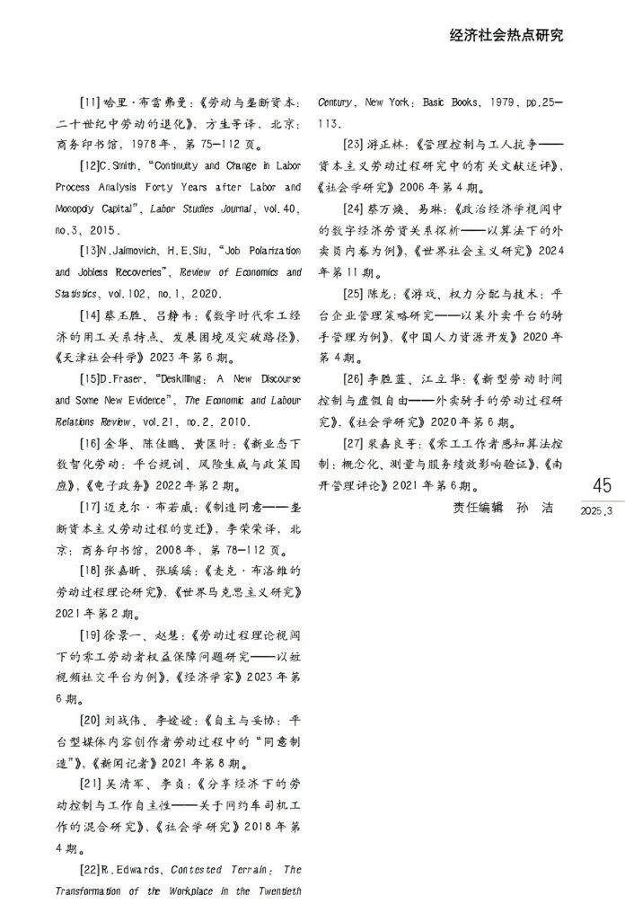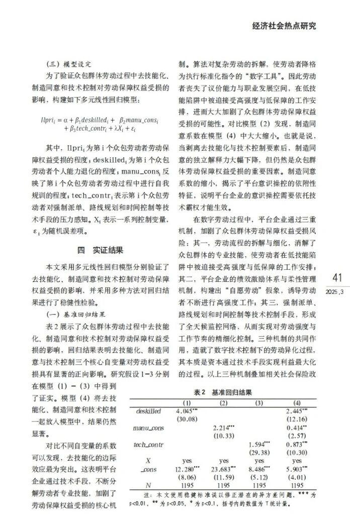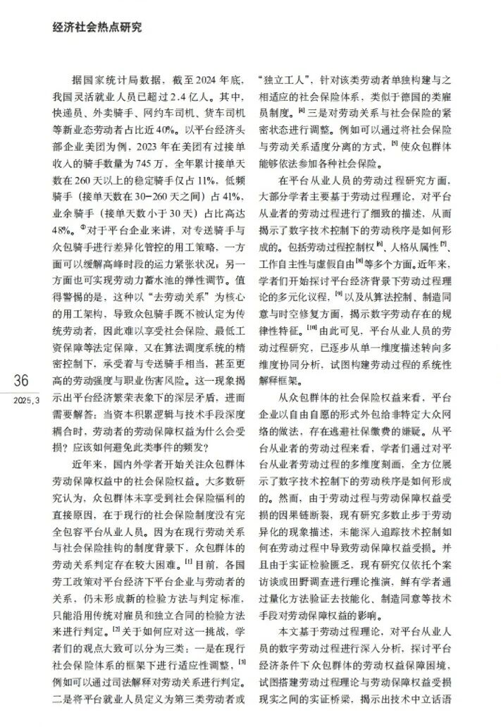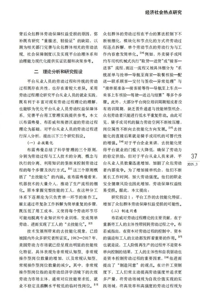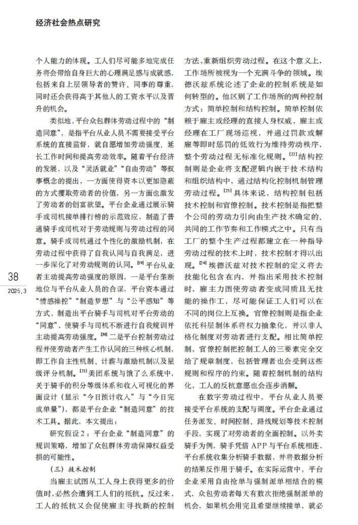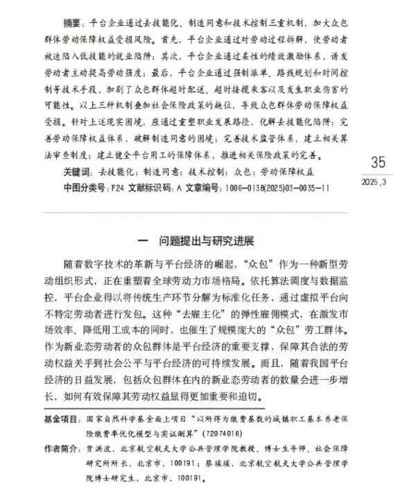 近日,w66利来旗舰厅贾洪波教授、博士研究生蔡瑶瑶发表《去技能化、制造同意和技术控制:众包群体劳动保障权益受损探析》一文,被《人大复印报刊资料·劳动经济与劳动关系》2025年第9期全文转载。