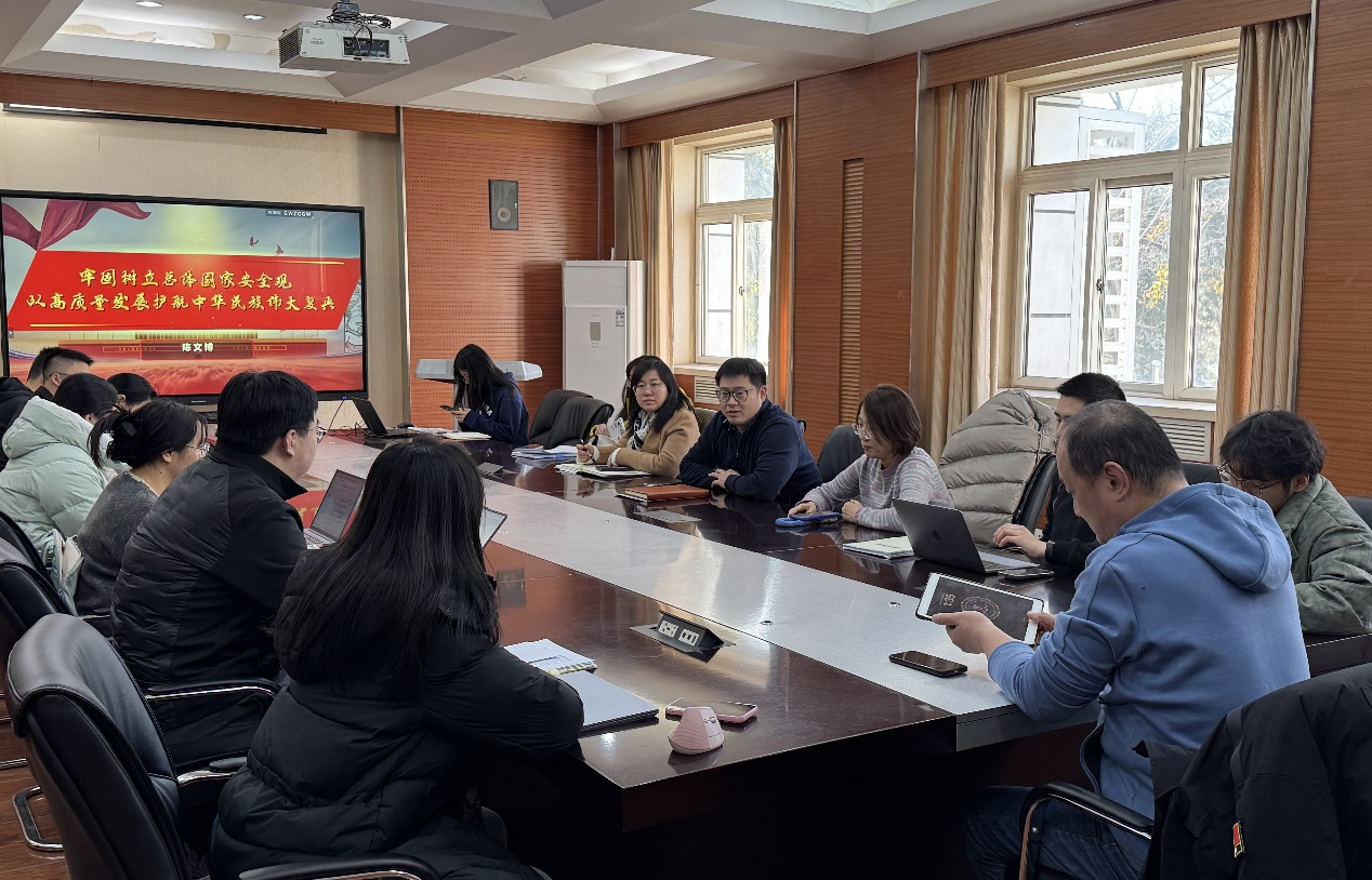 最后,陈文博书记讲授了“牢固树立总体国家安全观”专题党课。陈文博书记从历史背景、理论发展和实践要求等维度,系统阐述了总体国家安全观的重要意义与贯彻路径,强调各支部和党员要将国家安全意识融入日常工作和组织建设中。