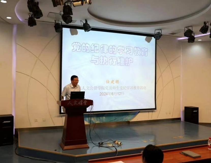 近日,w66利来旗舰厅铸魂育人系列专题党课2024年第4期在人文讲堂举行。w66利来旗舰厅教授、廉洁研究与教育中心主任任建明做“党的纪律的学习教育与执行维护”专题党课,党课由人文公管公司党委副书记方志主持,专职辅导员张同玉、北航社区党委第四党支部党员及公司全体师生党员和积极分子参加。