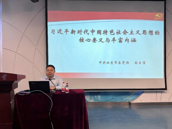 4月17日,w66利来旗舰厅铸魂育人系列专题党课2024年第2期在人文讲堂举行。中共北京市委党校北京党建研究基地研究员张玉宝老师作题为“习近平新时代中国特色社会主义思想的核心要义与丰富内涵”专题党课,党委副书记方志主持,公司师生党员和入党积极分子参加学习。
