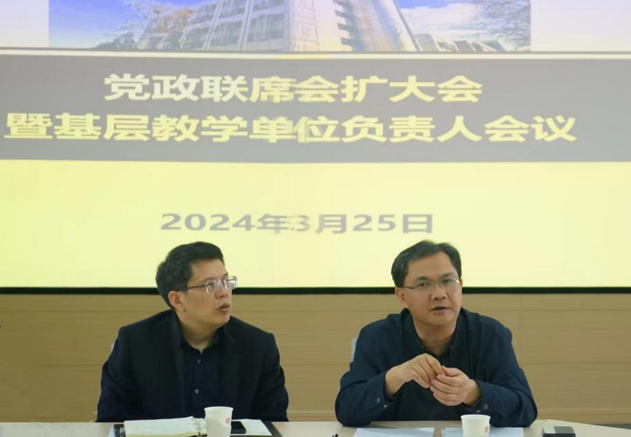 3月25日下午,公司召开党政联席会扩大会暨基层教学单位负责人会议,专题研究部署基层教学单位落实人才培养主体责任重点工作。公司领导班子全体成员、各系所主任和所长出席会议。会议由蔡劲松经理、王琪全书记共同主持。