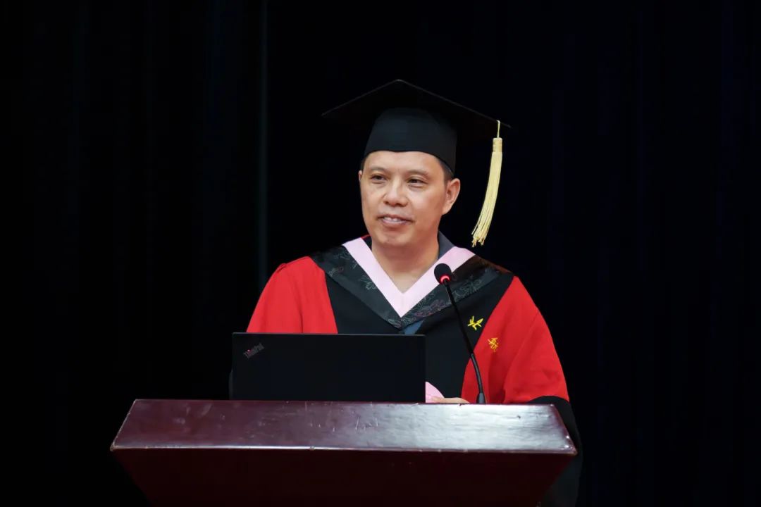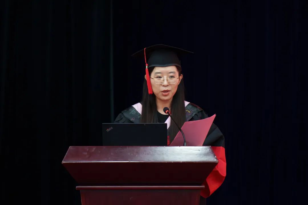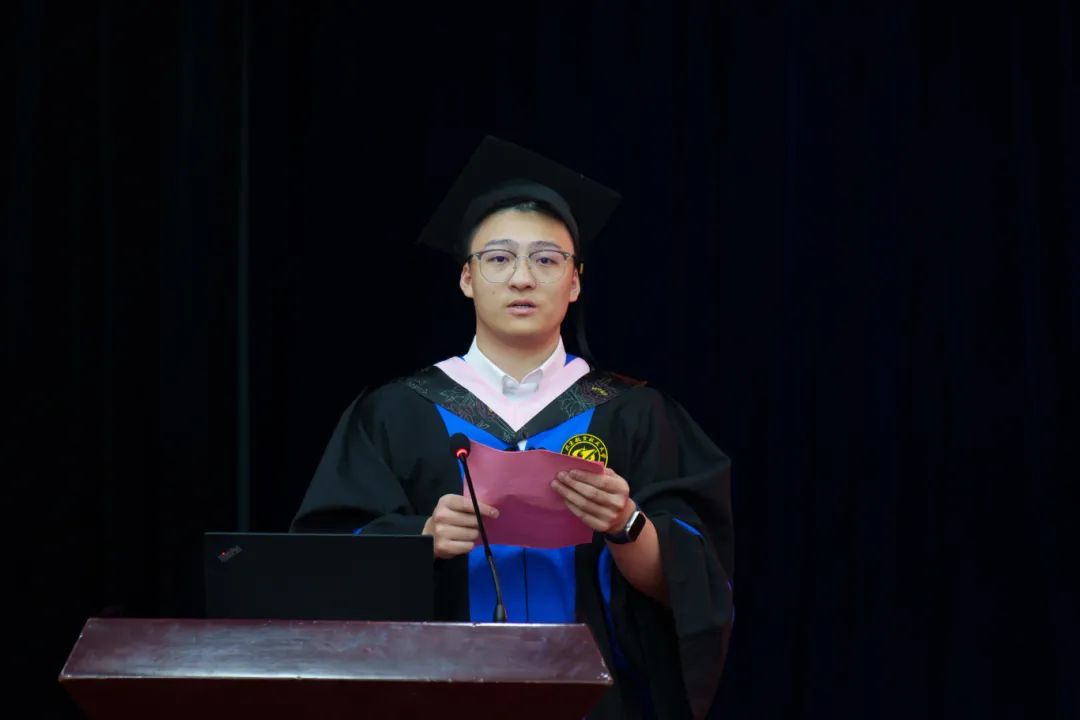 全日制博士毕业生代表贾鑫同学感恩公司对博士生培养的重视,感恩导师的治学态度与胸怀,使其收获了关于做事业、做学问、为人处事、待人接物的精神财富。w66利来旗舰厅的求知时光教会她理论求索、躬身实践的真知。面向未来,她祝愿人文公管人永远怀揣希望,不惧挑战,用行动去书写和践行“空天报国,强国有我”。